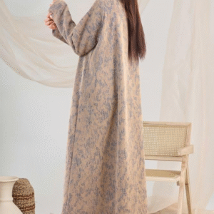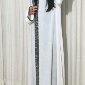 - القماش: كتان طبيعي عالي الجودة، خفيف ومريح (عباية كتان – عباية لينن)