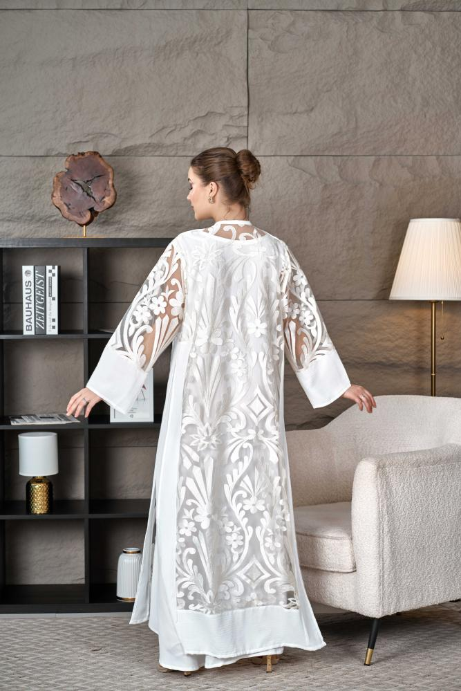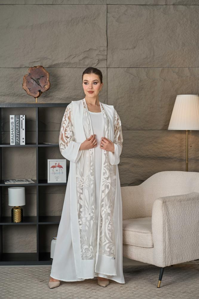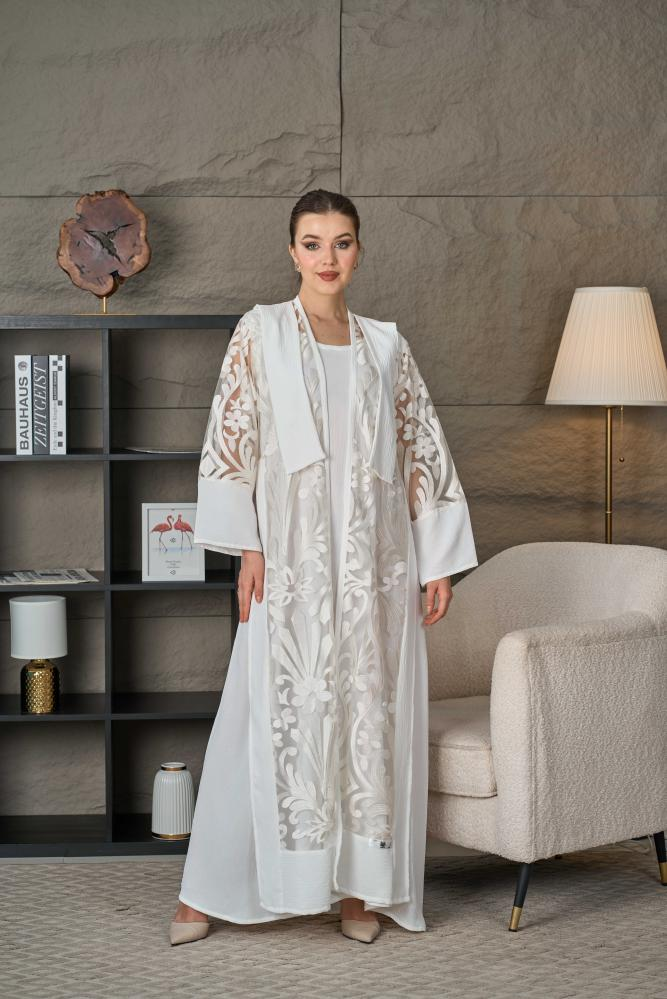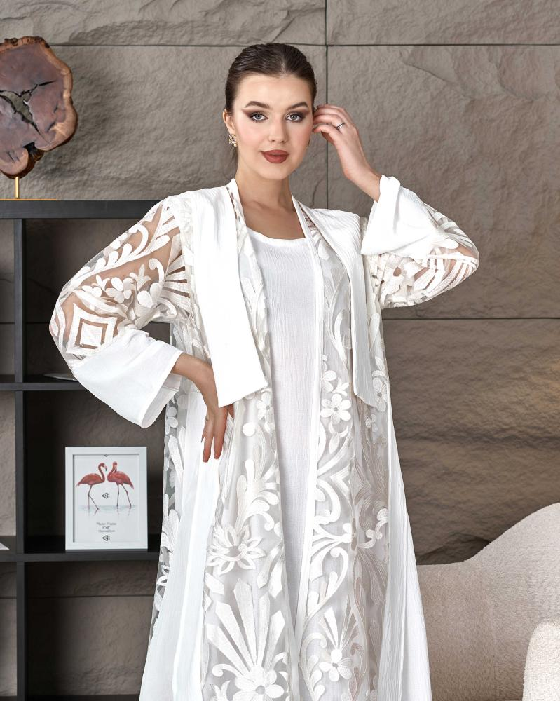 عباية تل بيضاء مطرزة بالزهور